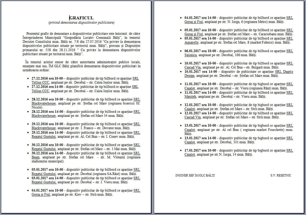 В интервью газете СП Маху заявил, что один из главных мотивов опротестования состоит в том, что местная власть не может выносить распоряжаться о демонтаже билбордов. Такое убеждение однако не помешало чиновнику прошлой весной, будучи на руководящей должности в примарии, подписать решение о сносе рекламной конструкции. Впрочем, как говорится, это уже совсем другая история, которую мы на днях обязательно расскажем.