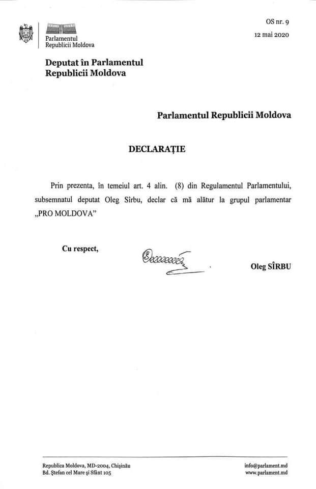 Таким образом, Олег Сырбу стал уже десятым депутатом этого политического формирования. Ранее к нему присоединилась вышедшая из ДПМ Елена Бакалэу.