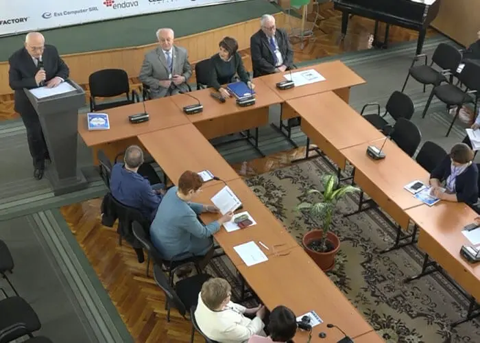 Costică Moroşanu, preşedintele societăţii de matimatică a României: „Rolul şi rostul meu la această conferinţă ţine de, dacă vreţi de istoticul activităţii mele legate de matematica aplicată şi idustriale, mă rog, ca şi amănut, dacă sunt lipsit de modestie, spun că reprezint Societatea Română de Matematică Aplicată şi Industrială, a cărui preşedinte sunt.”