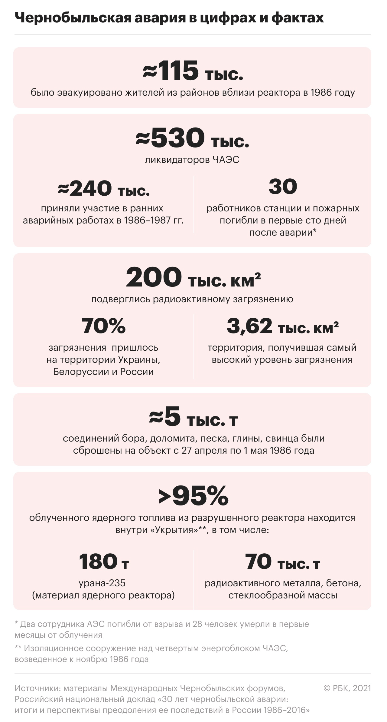 Авария на Чернобыльской АЭС произошла в ночь на 26 апреля 1986 года. На атомной электростанции взорвался реактор РБМК-1000 энергоблока № 4. Последствия были катастрофическими. Основной причиной взрыва назвали грубые нарушения правил эксплуатации АЭС, допущенные работниками четвертого энергоблока.