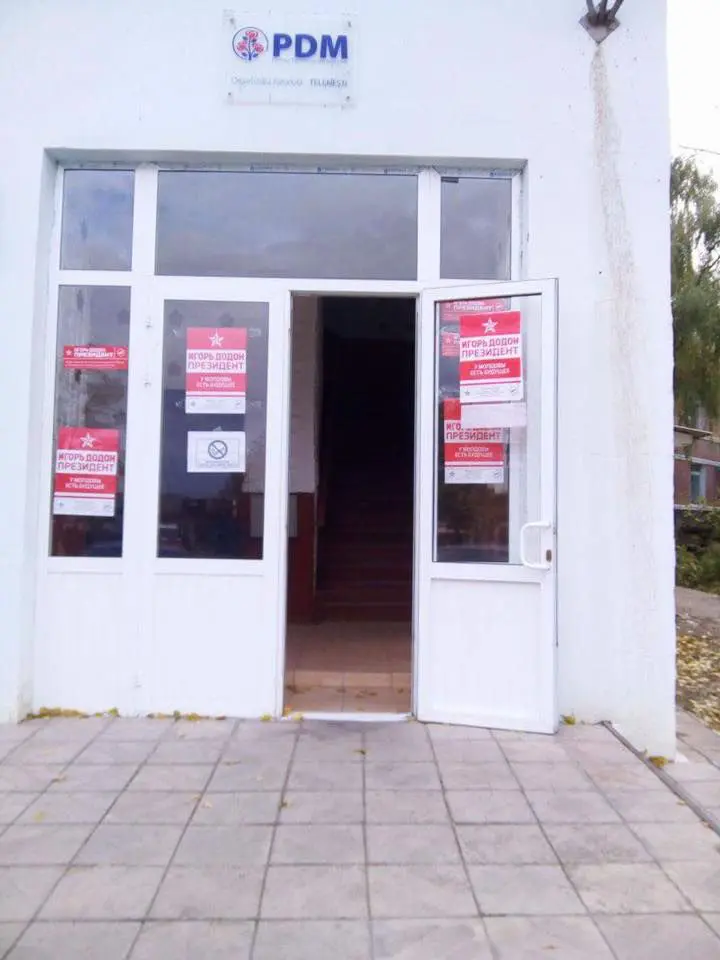 На входе в штаб-квартиру демократов расклеены листовки “Додон – президент”Политика By admin Last updated Oct 30, 2016 Share Несколько предвыборных листовок с лозунгом «Игорь Додон – президент» были наклеены прямо на входе в штаб-квартиру демократов в Теленештах.Фото: Curaj TV Share FacebookOK.ruVKTwitterTelegramViberWhatsApp