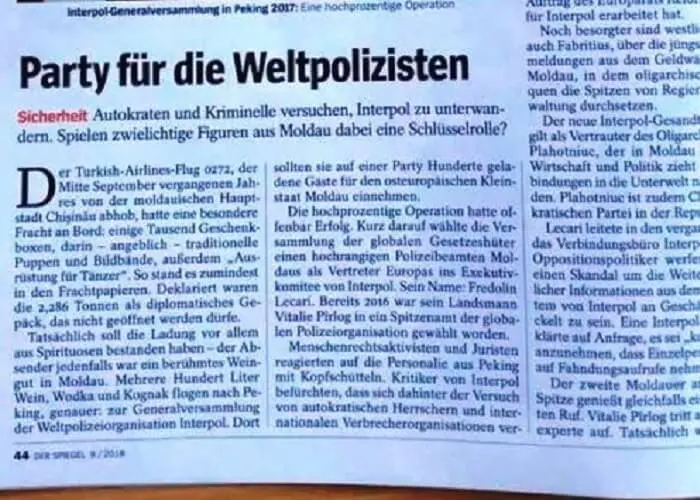 Влиятельное германское издание Der Spiegel  опубликовало статью не только о том, как, но и для чего глава молдавской Пограничной полиции Фредолин Лекарь вошел в состав руководства Интерпола.