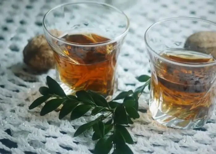Se toacă mărunt coaja de la 14 nuci uscate și se pune la macerat vreme de două luni jumătate cu 500 ml de țuică. Se ia câte o lingură de macerat, dimineața pe stomacul gol, pentru curățarea vaselor de sânge, tromboză, chisturi, depuneri de săruri, tumori sau mastopatie fibromatoasă.
