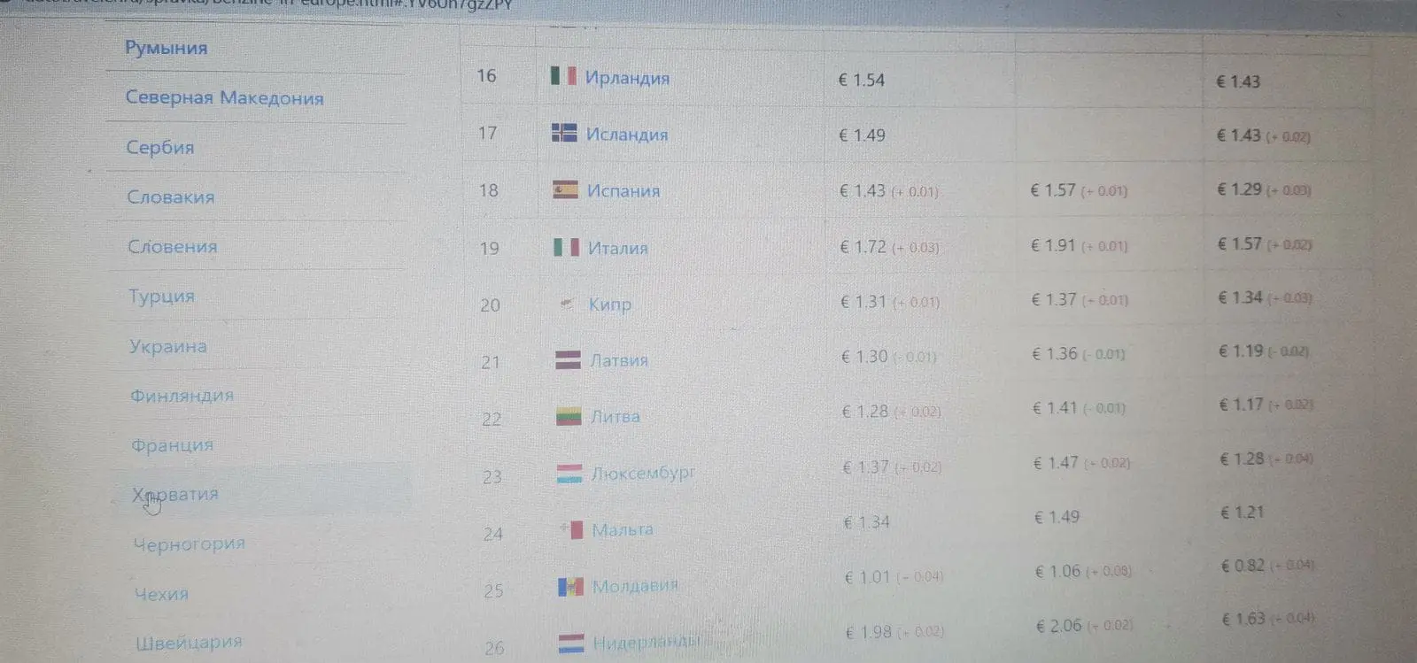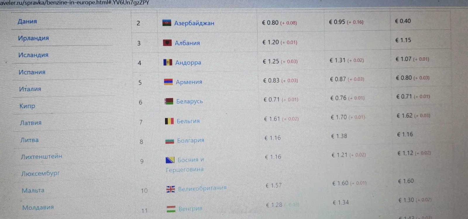 В разных странах Европы стоимость, к примеру, бензина начинается от 1,15 и доходит до 1 евро 70 центов. Цена дизеля в среднем — 1 евро 10 центов (22 лея по курсу НМБ). Самая низкая цена бензина на сегодняшний день в Боснии и Герцеговине — 1 евро 15 центов (23 лея). Самая высокая цена в Португалии — 1 евро 70 центов (34 лея). Дизель, от 1,16 (24 лея) в Румынии и Болгарии, до 1,65 евро (33лея) в Швейцарии. Если сравнивать цену топлива в бывших странах СССР, то самая низкая цена бензина сейчас в России и Белоруссии, в среднем до 70 евро центов (14 лей). Дизель от 60 до 80 евро центов (от 13 до 15 лей). Стоит отметить, что в таких странах как Грузия и Азербайджан, где в среднем уровень дохода составляет 350 евро в месяц, цена топлива не превышает 80 евро центов (15лей) на бензин, и от 50 до 70 евро центов (до 14 лей) на дизель. В Турции стоимость топлива всех видов не превышает 70 евро центов (14 лей), при этом доходы турков в среднем составляют 1000 евро в месяц. Сравним, также богатейшие страны Европы, например Германию и Францию, где средняя зарплата составляет более 2000 евро в месяц, стоимость топлива, того же бензина — 1,50 евро (30 лей) за литр дизеля — 1,40 (28 лей). В Молдове по статистике на 2021 год, среднемесячные зарплаты составляют около 350 евро.