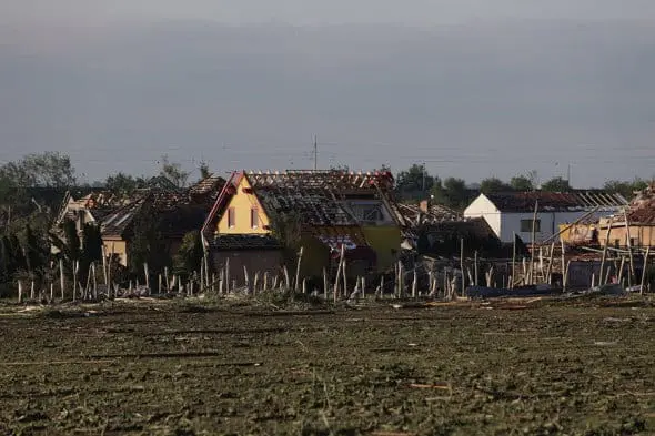 Торнадо в Южно-Моравском крае на востоке Чехии частично разрушил минимум четыре населенных пункта. От некоторых домов остались только стены, а разрушения походили на последствия бомбежки, пожаловались старосты сел Грушки и Микулчицы, передает rbc.ru.
