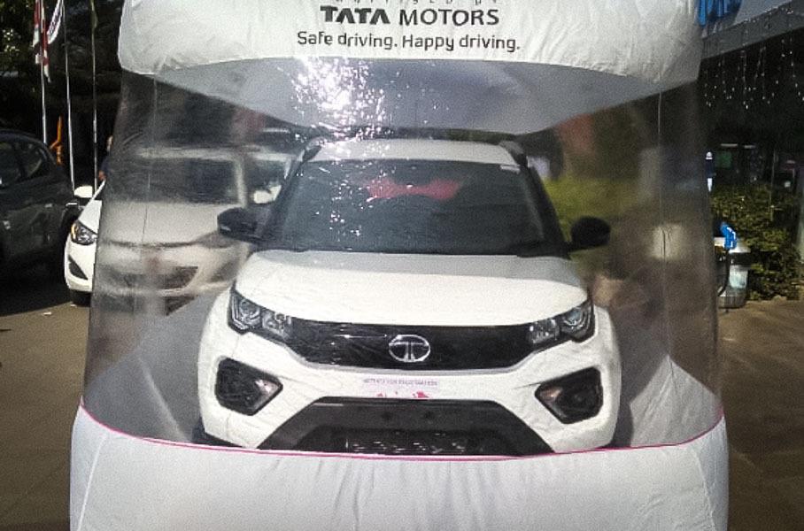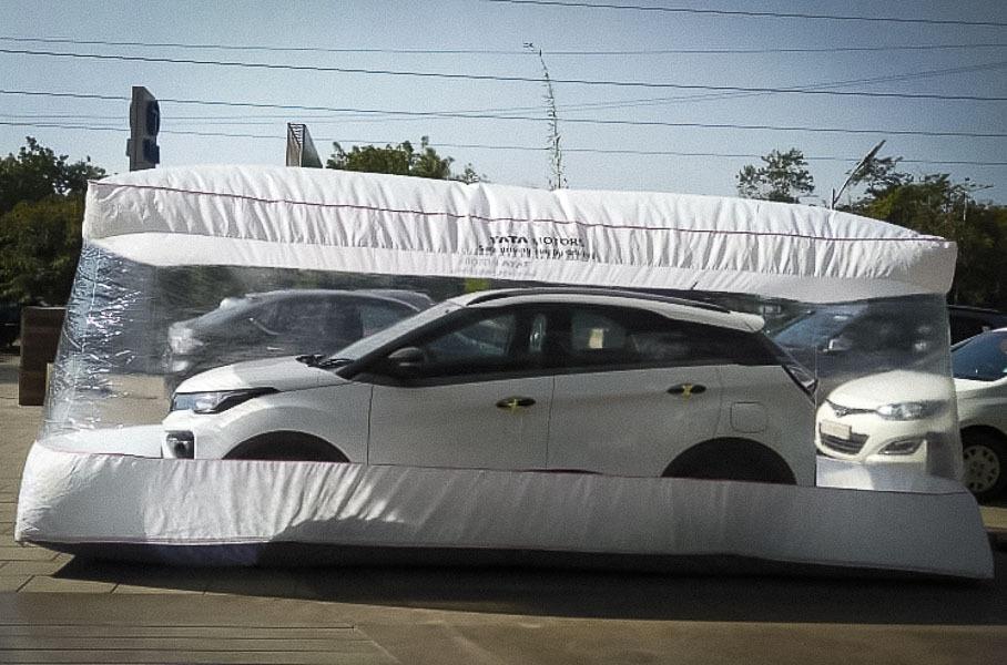 Новый способ защиты специалисты индийской компании придумали для того, чтобы свести к минимуму контакты сотрудников дилерского центра с автомобилями. Поскольку Индия в настоящий момент является второй страной по числу заболевших COVID-19, подобный надувной «гараж» позволит обезопасить потенциальных покупателей от заражения через контакты с поверхностями автомобилей.