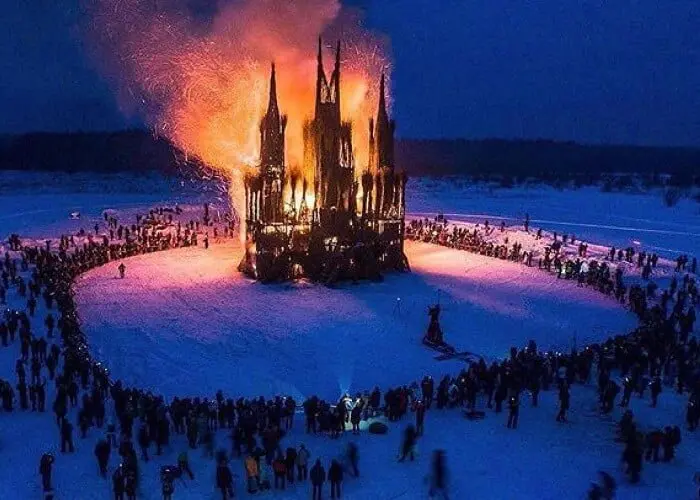 Православные возмутились сожжением храма. Вместо чучела на масленицу сожгли храм из веток