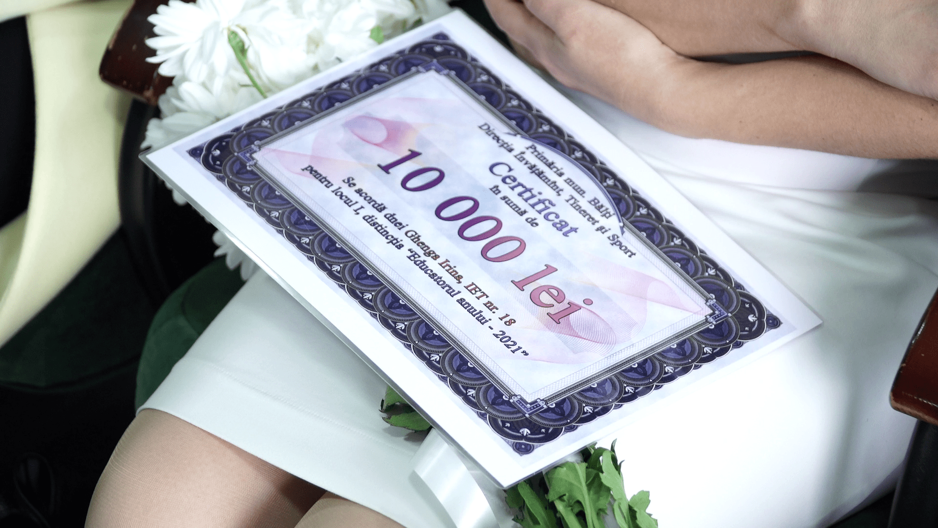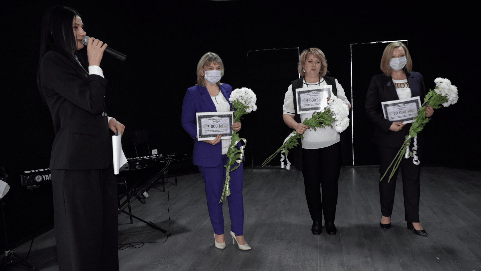 Это учителя городских школ и колледжей, работники дошкольного образования. Денежные премии в размере 3 тысяч леев за третье место по результатам года вручили: Валентине Рябовой, Наталье Кудалб и Наталье Панченко. Второе место и 5 тысяч леев достались Аделине Фуртунэ, Лилиане Куринной, Светлане Пахолчак. И первые места завоевали Анна Саранчук, Аурелия Михальчук и Ирина Генга. Им вручили дипломы и денежные премии в размере 10 тысяч леев.