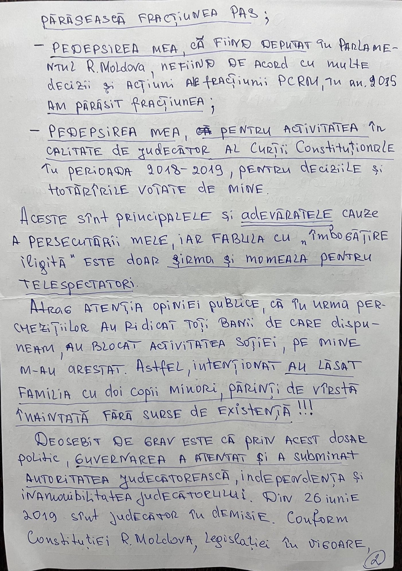 Ex – deputatul susține că a fost supus unei justiții televizate. „Dosarul este fabricat și fals…este exclusiv politic, organizat și coordonat de actuala guvernare”, a scris Artur Reșettnicov, în declarația pe patru pagini scrise de mână, publicată pe pagina sa de Facebook.