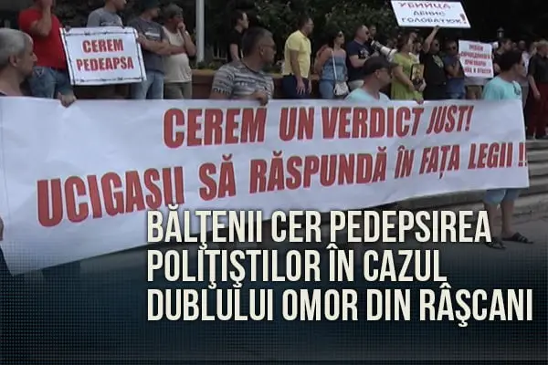 Un grup de bălţeni va protesta astăzi în faţa judecătoriei sectorului Buiucani a Capitalei, unde procurorii vor cere 30 de zile de arest pentru Şeful adjunct al Inspectoratului de Poliţie Rîşcani şi şeful Poliţiei criminale, în cazul dublului omor săvârşit de Denis Golovatiuc. Printre manifestanţi sunt atât rudele, cât şi prietenii celor două victime Dmitrii Tatarciuc şi Igor Iurceac, care au fost ucişi cu un ciocan duminică 19 iunie. Protestatrii solicită ca persoanele responsabile pentru muşamalizarea omorului să răspundă în faţa legii.