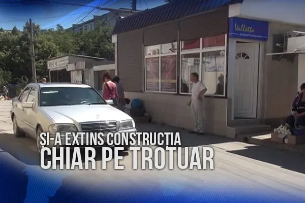 Un agent economic de pe strada Bulgară din orașul Bălți și-a extins construcția chiar pe trotuar. În consecință, locuitorii din prejmă sunt nevoiți să meargă pe drumul rezervat autoturismelor. Potrivit angajaților, directoarea salonului ar fi plecată peste hotarele țării, așa că nimeni nu a putut răspunde dacă construcția a fost exstinsă în limitele legale.