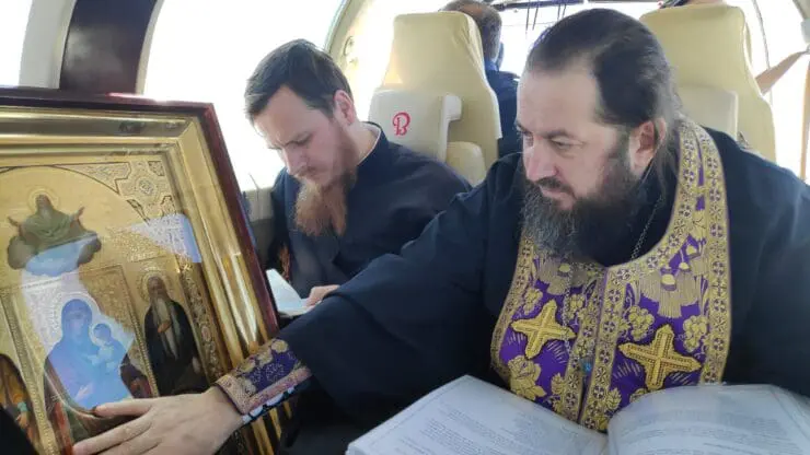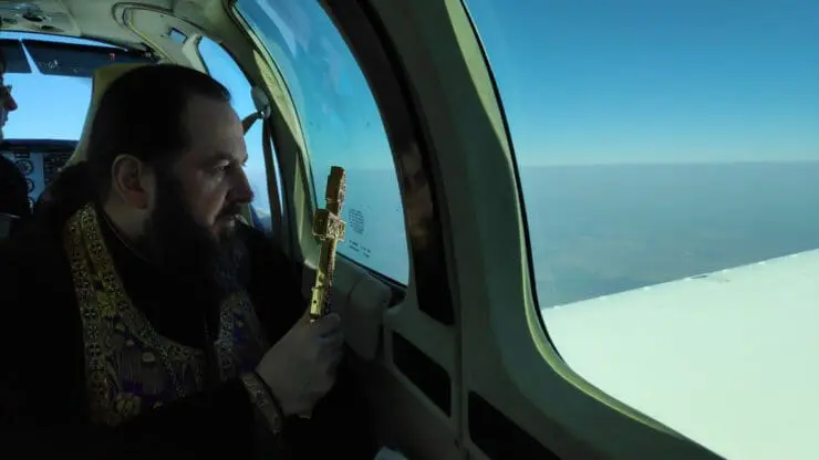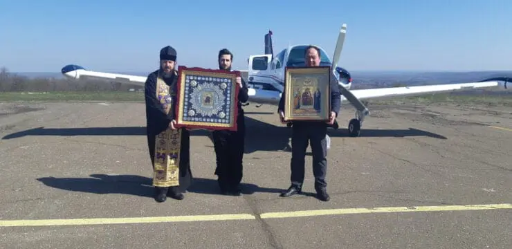Prelații au urcat într-un avion de mici dimensiuni la aeroportul de la Vadul lui Vodă și au făcut un tur al Republicii Moldova. Pe parcursul călătoriei, însoțiți de icoane, episcopul Petru însoțit de însoțit de protoiereul Nicolai Boian și protodiaconul Victor Rotari s-au rugat pentru Republica Moldova.
