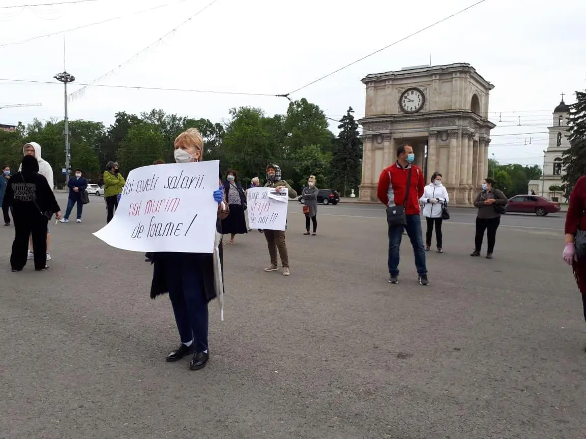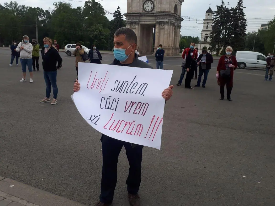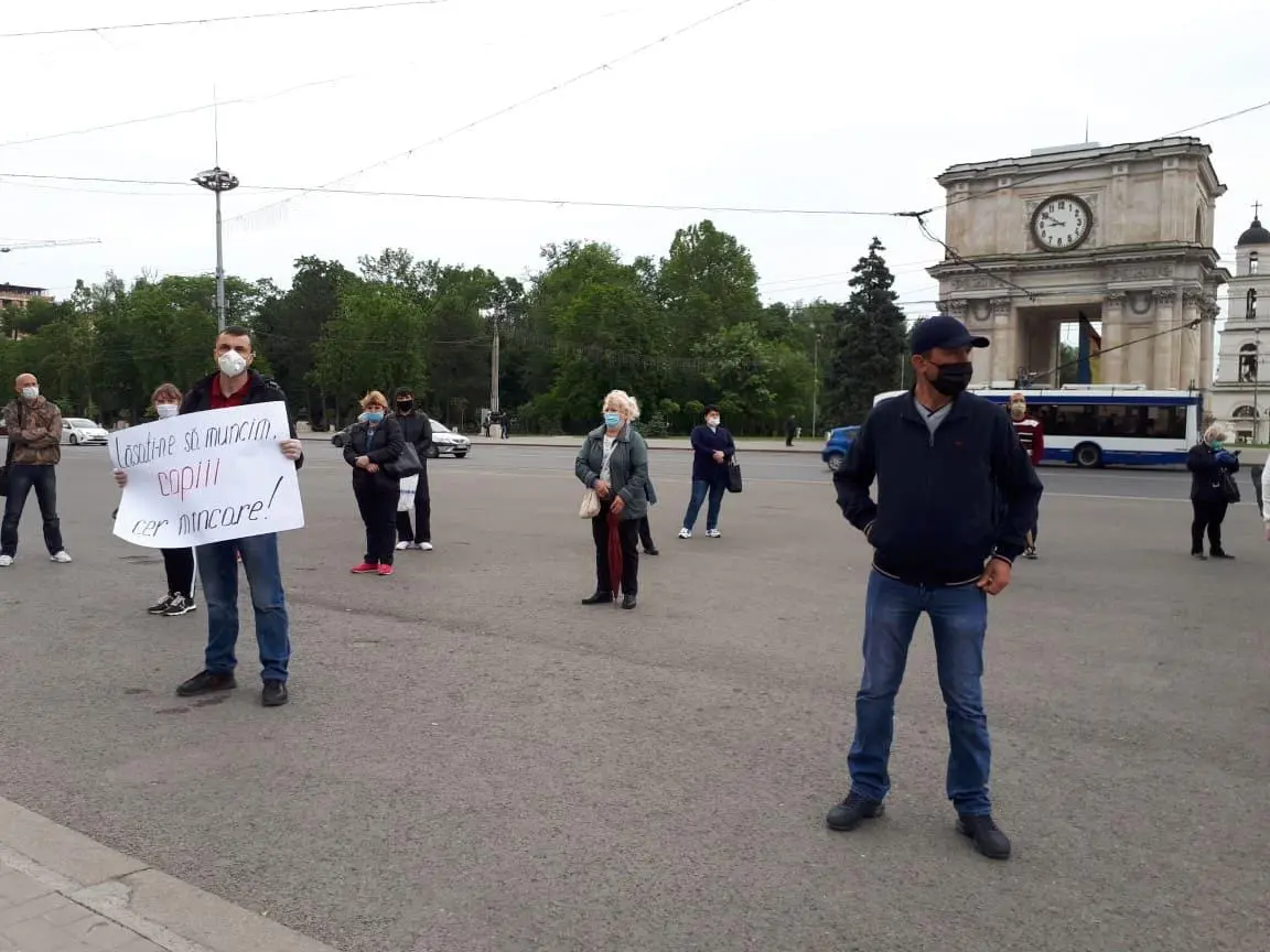 Comercianții piețelor din Chișinău au ieșit din nou în stradă pentru a cere redeschiderea piețelor. De această dată ei s-au adunat în Piața Marii Adunări Naționale cerând guvernării locuri de muncă.