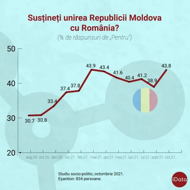 Menționăm faptul că sondajul a fost realizat în perioada 3-18 octombrie, pe un eșantion de 834 respondenți, cu marja de eroare a acestuia fiind de  +/- 3,4%, pe un număr de 80 localități doar din partea dreapta Nistrului.
