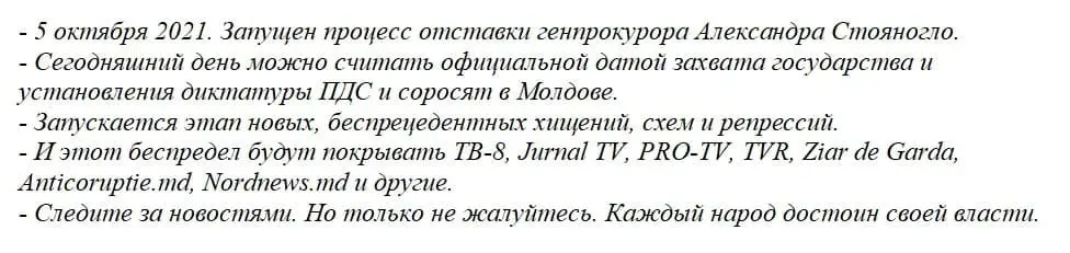 Сам генпрокурор Алексндр Стояногло выступил на брифинге 5 октября, на котором сообщил, что не собирается покидать свой пост, пишет sputnik.md