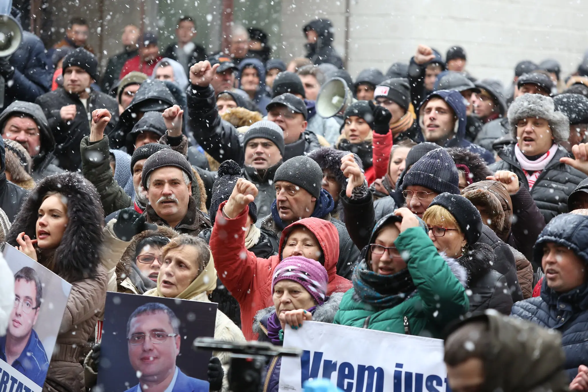 Массовый митинг протеста вновь развернулся у суда сектора Рышкань: сторонники Ренато Усатого, гражданские активисты, жители Кишинева и районов республики митинговали против возобновления уголовного дела в отношении лидера Нашей партии. Люди пришли на митинг также для того, чтобы выразить возмущение репрессиями правящего режима в отношении политической оппозиции. Протестующие скандировали: “Сво-бо-ду!”, “Justitie corecta!”, “Ре-на-то!”. Манифестанты держали в руках портреты Ренато Усатого, плакаты с надписями “Ренато, мы с тобой!”, “Jos regimul Plahontniuc!” , “Свободу политзаключенным!”, “Плахотнюк, вон из Молдовы!” “Досрочные выборы!”