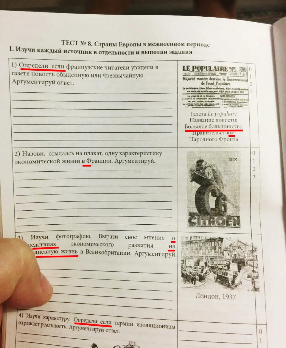 «Определи если французские читатели увидели в газете новость обыденную или чрезвычайную, аргументируй ответ». Тут же – фотография первой полосы газеты со статьей, название которой переведено как «Большое большинство Правительством Народного Фронта». Как ответить на этот вопрос?