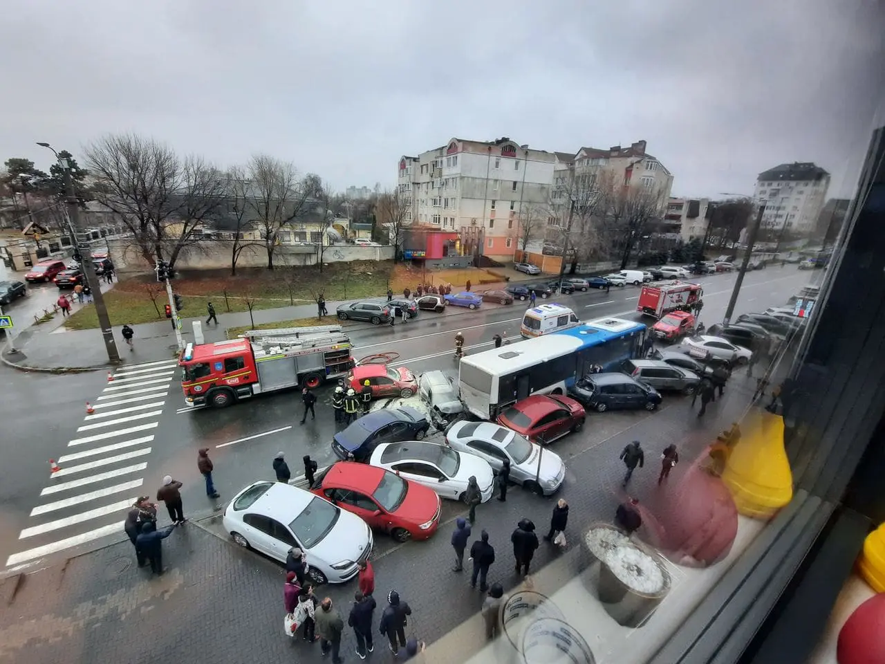 В Кишиневе на улице Александрии 8 в среду, 8 декабря, произошла масштабная авария: автобус столкнулся сразу с несколькими автомобилями. На место происшествия отправилась служба спасателей и патрульная полиция.