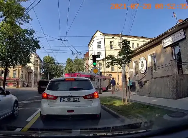 Участник группы ГБМ в Facebook 28 июля опубликовал видео, снятое на видеорегистратор его автомобиля. На видео видно, как на перекрестке улиц Бэнулеску-Бодони и Букурешть троллейбус во время поворота сбил девочку, которая пересекала улицу по пешеходному переходу на самокате.