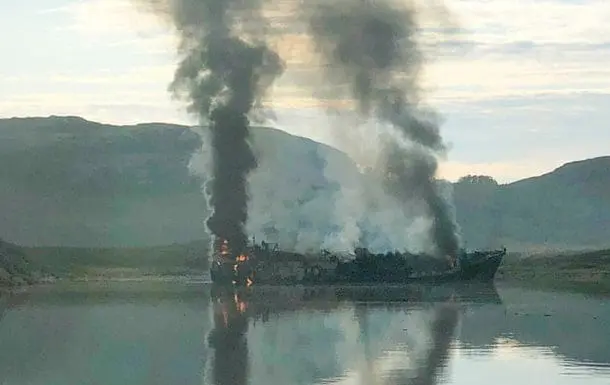 Отмечается, что прошлой ночью рыболовецкое судно отбуксировали из порта, а жителям Киркенеса приказали оставаться дома и закрыть окна из-за едкого дыма.