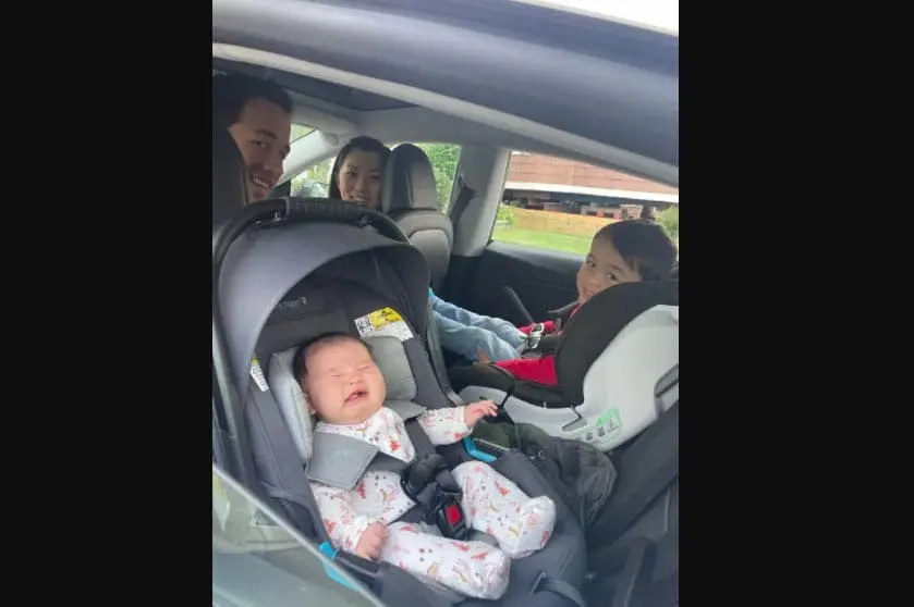 В сентябре семейная пара Йиран и Китинг Шерри везли своего 3-хлетнего сына Рафу в детсад. Семья застряла в пробке, когда у женщины начали отходить воды. Мужчина перевел автомобиль Tesla, когда до больницы оставалось 20 минут езды. Одну руку мужчина положил на руль, другой помогал жене.