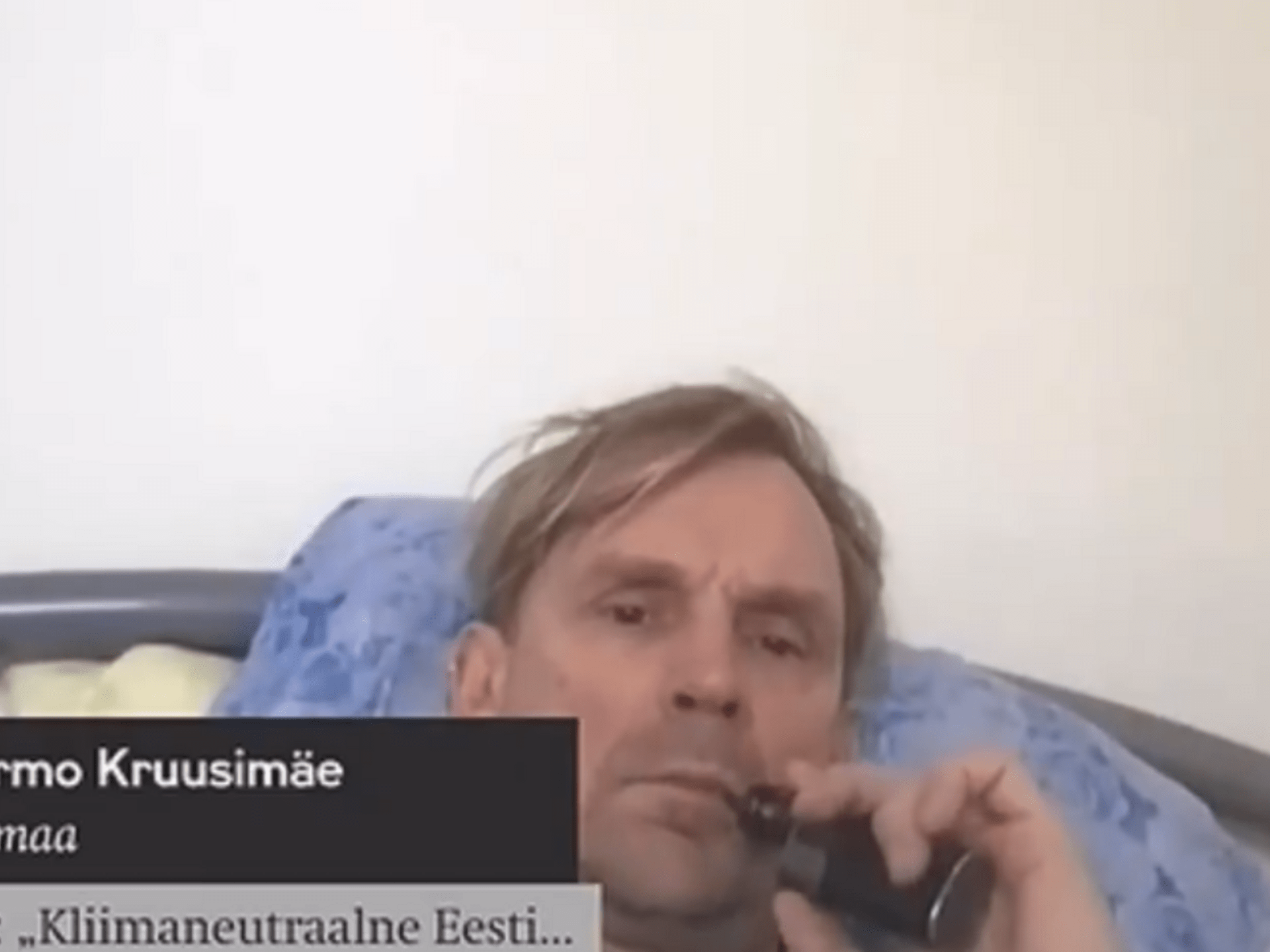 Тармо Круузимяэ ранее подал знак, что хочет задать вопрос на тему климатической нейтральности. Когда до него дошла очередь, то на видео был виден лишь лежащий в кровати Круузимяэ, который уже не хотел задавать никаких вопросов.