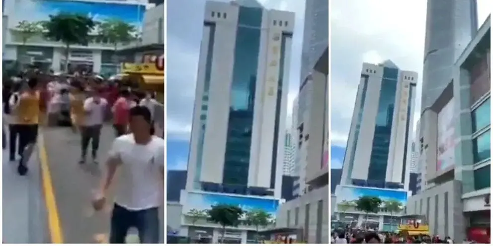 В китайском Шэньчжэне в центре города накренился небоскреб, вызвав панику у людей на прилегающих улицах, сообщает lenta.ru.