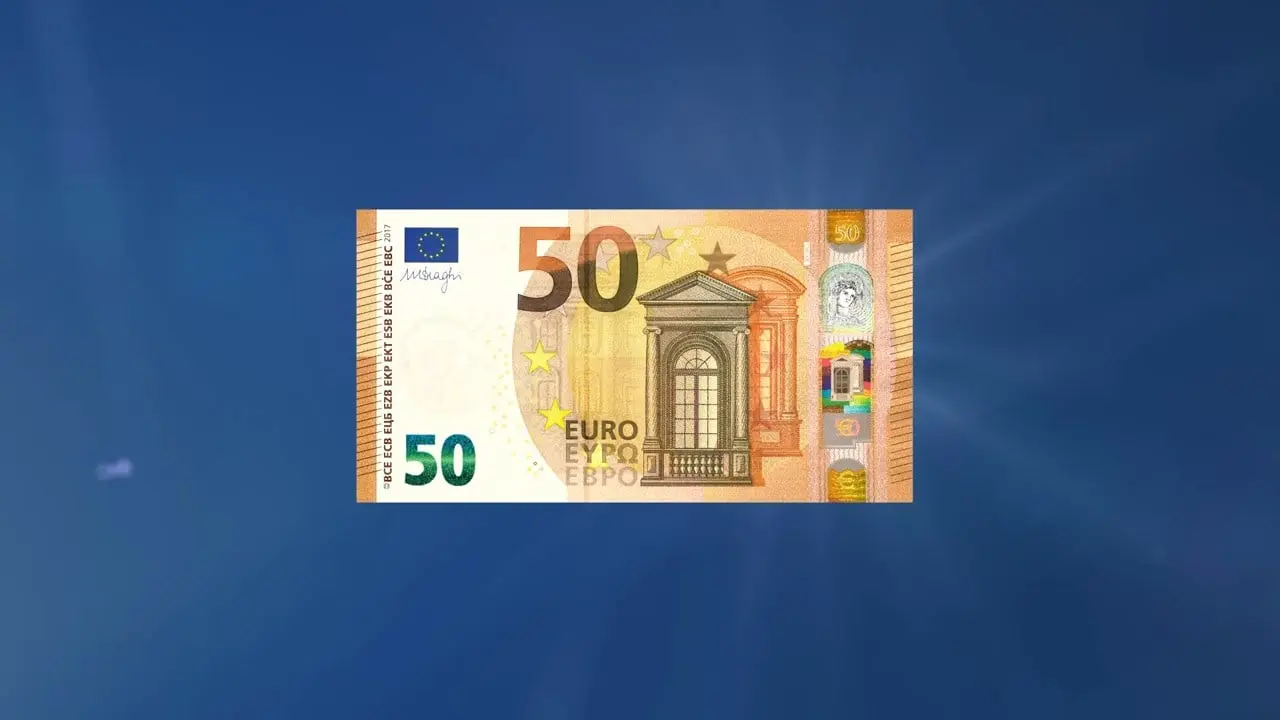 Новую европейскую банкноту по-прежнему украшает портрет героини древнегреческой мифологии — Европы. Ее изображение выполнено в виде водяного знака и на голографической вертикальной полосе. Еще одним отличием новой купюры стало то, что при наклоне цифра 50 в ее нижнем левом углу меняет цвет с синего на темно-зеленый. А надпись “евро” на банкнотах, наряду с латинским и греческим шрифтом, выполнена кириллицей — в связи с присоединением к Евросоюзу Болгарии в 2007 году.